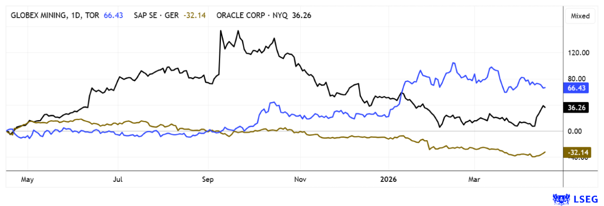 GLOBEX MINING ENTPRS INC. | CA3799005093 | TSX: GMX. OTCQX: GLBXF , SAP SE O.N. | DE0007164600 , ORACLE CORP. DL-_01 | US68389X1054