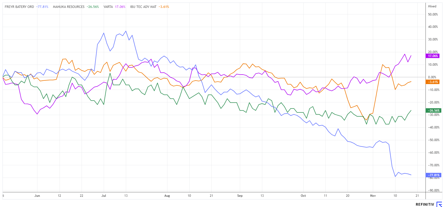 Manuka Resources Limited | AU0000090292 , VARTA AG O.N. | DE000A0TGJ55 , IBU-TEC ADV.MATER. INH.ON | DE000A0XYHT5 , Freyr Battery | LU2360697374
