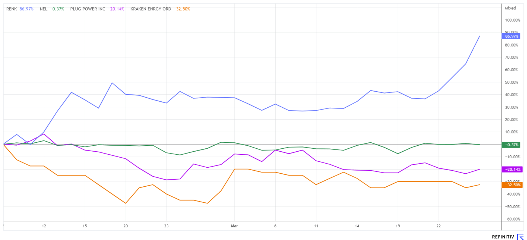 RENK AG O.N. | DE000RENK730 , KRAKEN ENERGY CORP | CA50075X1024 , PLUG POWER INC. DL-_01 | US72919P2020 , NEL ASA NK-_20 | NO0010081235