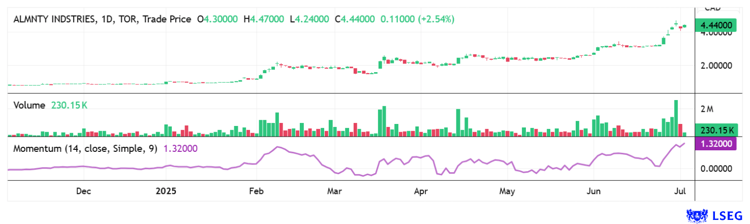 Die Vorbereitung auf den Eintritt in den renommierten US-Handel unterstreicht den Anspruch, künftig verstärkt internationale Investoren anzusprechen. Denn ein Listing an der Nasdaq eröffnet nicht nur Zugang zu kapitalstarken Fonds und institutionellen Anlegern, sondern erhöht auch die Chance auf weitere Indexaufnahmen sowie die erhöhte Sichtbarkeit am Weltmarkt. Für Unternehmen wie Almonty ist dies gleichbedeutend mit einem Qualitätssiegel, denn nur wer umfassende Transparenz-, Finanz- und Governance-Anforderungen erfüllt, schafft es an den bekanntesten Aktienort der Welt. Langfristig könnten sich daraus erhebliche Vorteile bei Kapitalbeschaffung und Bewertung ergeben. Kurzfristig führt es zu einer deutlichen Erhöhung der Liquidität. Wir dürfen gespannt sein!