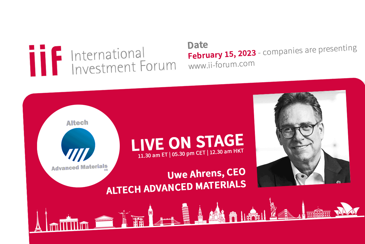 Großkonzerne wie BASF und Volkswagen lassen ihre R&D Abteilungen heiß laufen, um mit Innovationen den EU Verordnungen gerecht zu werden. Viel einfacher ist es für Altech Advanced Materials, als schlankes börsennotiertes Unternehmen, seine Innovation im Bereich der Elektromobilität weiter zu verfeinern und zu kommerzialisieren. CEO Uwe Ahrens gibt Einblicke in die Roadmap der Firma im heute stattfindenden 6. International Investment Forum. Hier geht es zur Anmeldung.