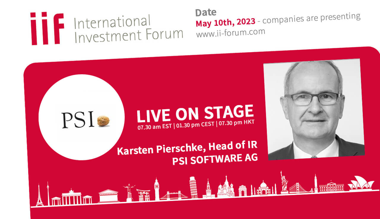 PSI Software wird am Mittwoch (10.05.2023) auf der virtuellen Investorenkonferenz IIF präsentieren. Hier zur kostenlosen Anmeldung.