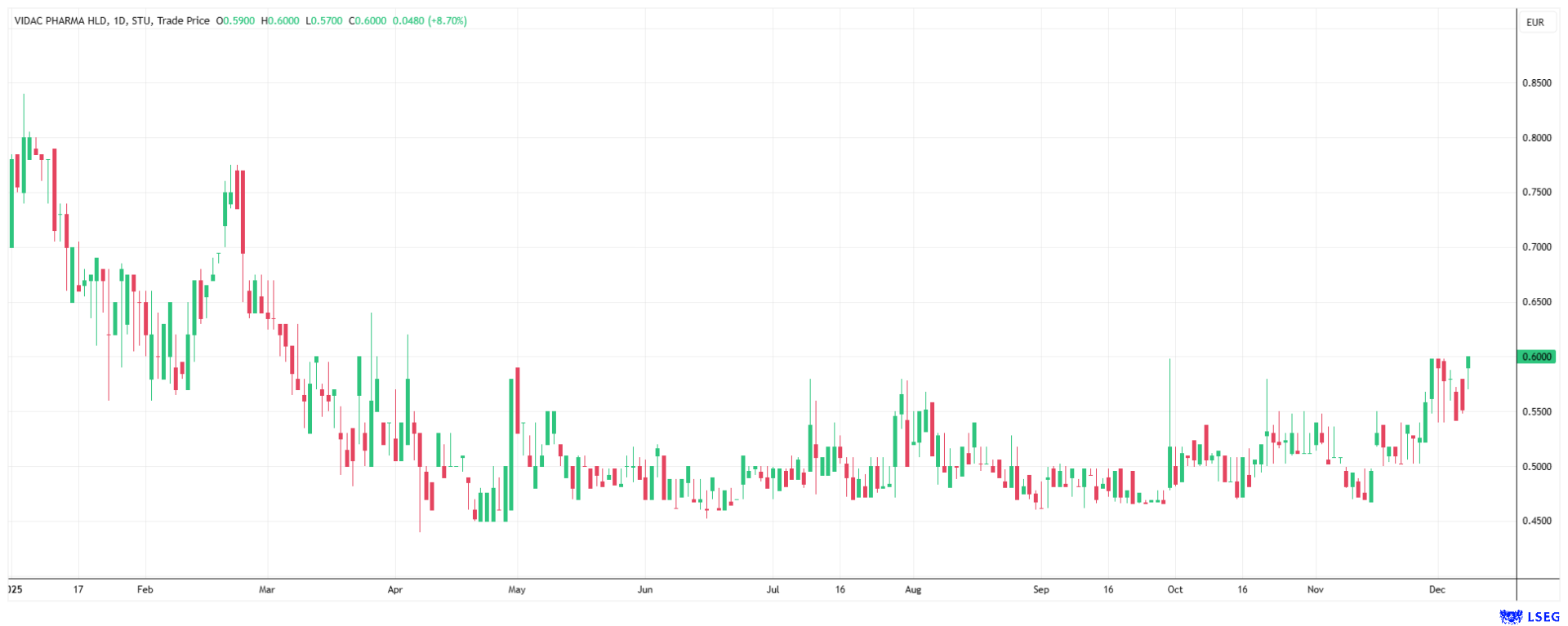 Die Onkologie bleibt der wertvollste Sektor im Gesundheitswesen. Anleger, die auf Roche und Pfizer setzen, kaufen Sicherheit und Dividenden. Doch wer den Überflieger für 2026 sucht, findet bei Spezialisten wie Vidac Pharma den größten Hebel. Das Unternehmen hat verstanden, dass man Krebs nicht nur bekämpfen, sondern schlicht verhungern lassen kann. Gelingt dieses Experiment am menschlichen Patienten, könnte der Weg von der Nische an die Weltspitze sehr kurz sein. Die Aktie hat während der vergangenen Monate konsolidiert und schickt sich aktuell an, neue Verlaufshochs auszubilden. Chancenorientierte Anleger sollten den Wert im Blick haben.