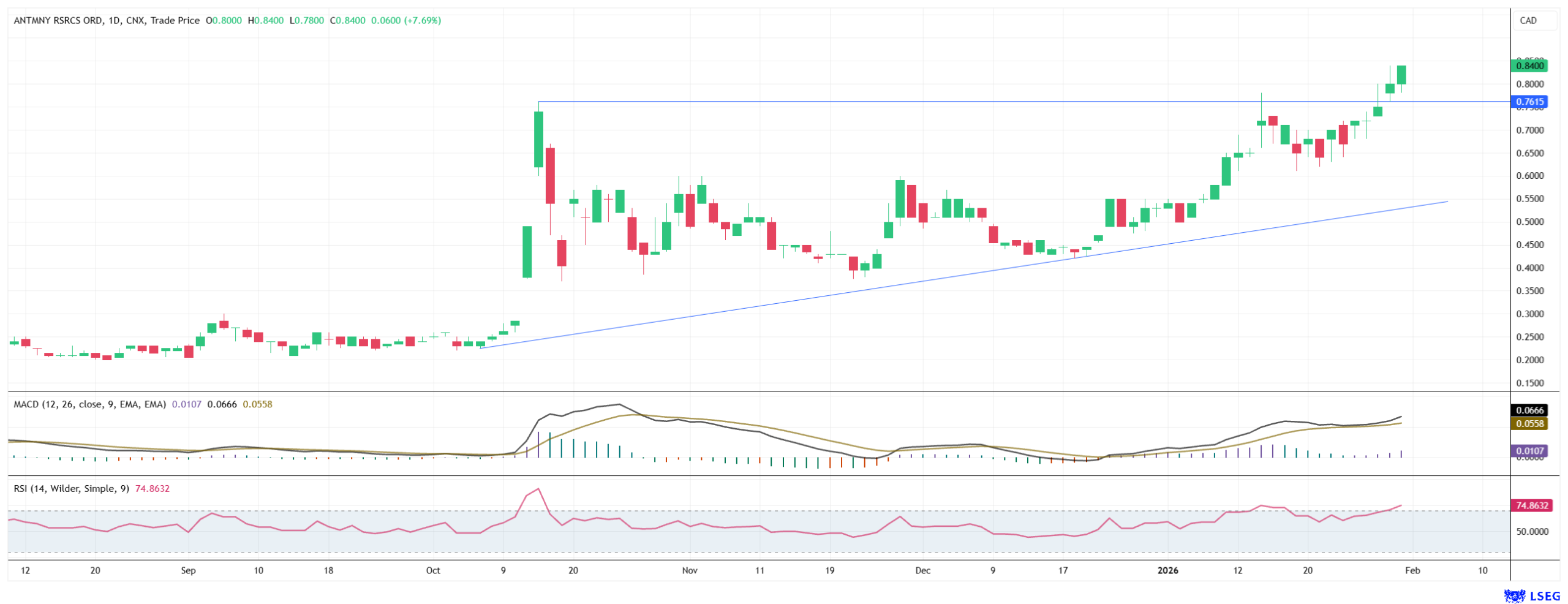 Antimony Resources entwickelt sich Schritt für Schritt zu einem der spannendsten Antimon-Explorer außerhalb Chinas. In einem Umfeld wachsender geopolitischer Spannungen und strategischer Rohstoffknappheit könnte das Unternehmen genau zur richtigen Zeit am richtigen Ort sein. Mit einer Marktkapitalisierung von rund 80 Mio. CAD stehen die Kanadier noch am Anfang ihrer Entwicklung. Bei weiteren Erfolgen im geplanten Bohrprogramm für das laufende Jahr sowie der Ausfertigung einer nach dem kanadischen Standard NI 43-101 konformen Ressource dürfte Antimony Resources weit mehr Anlegerinteresse auf sich ziehen.