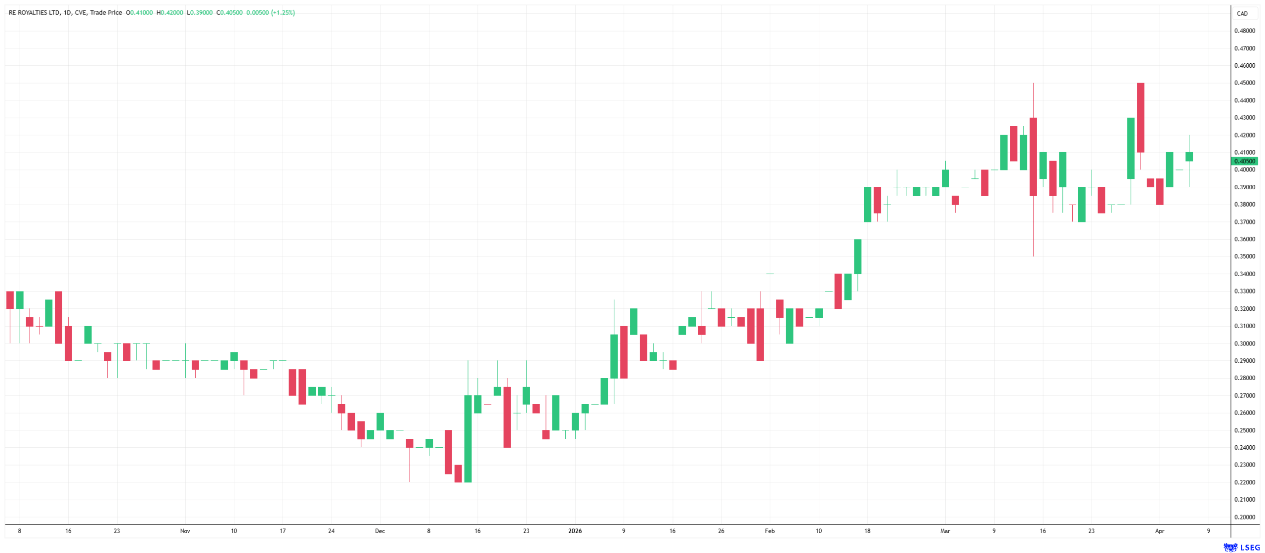 RE ROYALTIES LTD | CA75527Q1081 | TSXV: RE , OTCQX: RROYF , APPLE INC. | US0378331005 , OR ROYALTIES INC | CA68390D1069 | TSX: OR