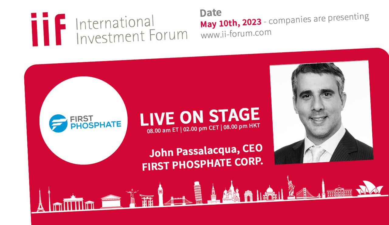 Wer mehr zu diesem Projekt wissen möchte, hat am 10. Mai 2023 auf dem 7. International Investment Forum die Chance, CEO John Passalacqua direkt Fragen zu stellen. Er präsentiert First Phosphate um 14:00 Uhr CEST (08.00 am EST, 08.00 pm HKT). Interessierte Anleger können sich hier kostenfrei registrieren.