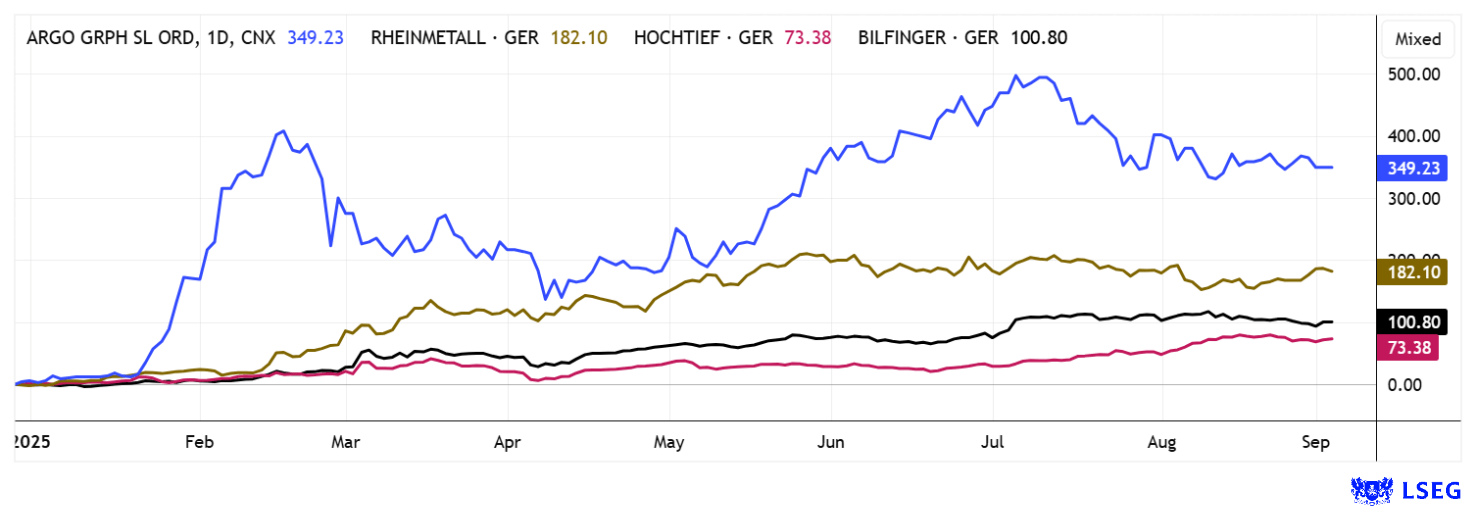 Das Rüstungs- und Infrastruktursegment wird derzeit mit reichlich öffentlichen Aufträgen ausgestattet. Auch wenn der Steuerzahler für diese Aufrüstungen und Erneuerungen aufkommen muss, offeriert die aktuelle Gemengelage eine Menge Renditemöglichkeiten für Aktionäre. Flexibilität ist dennoch gefragt, denn manchmal kommt es auch zu stärkeren Gewinnmitnahmen in den Charts. Bei Rheinmetall und ARGO scheint die Wende geschafft, Hochtief und Bilfinger sollten zwischenzeitlich etwas abkühlen.