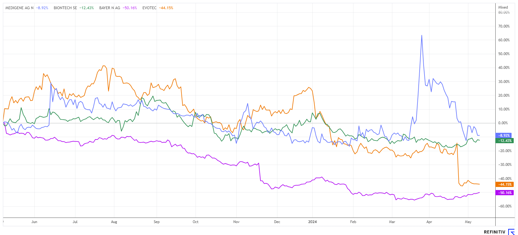 EVOTEC SE INH O.N. | DE0005664809 , BIONTECH SE SPON. ADRS 1 | US09075V1026 , MEDIGENE AG NA O.N. | DE000A1X3W00 , BAYER AG NA O.N. | DE000BAY0017