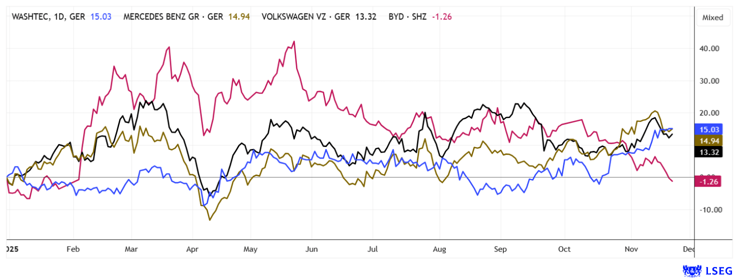 WASHTEC AG O.N. | DE0007507501 , BYD CO. LTD H YC 1 | CNE100000296 , MERCEDES-BENZ GROUP AG | DE0007100000 , VOLKSWAGEN AG VZO O.N. | DE0007664039