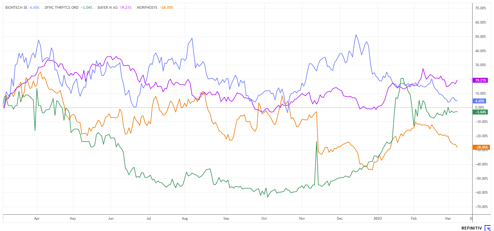 BAYER AG NA O.N. | DE000BAY0017 , DEFENCE THERAPEUTICS INC | CA24463V1013 , MORPHOSYS AG O.N. | DE0006632003 , BIONTECH SE SPON. ADRS 1 | US09075V1026