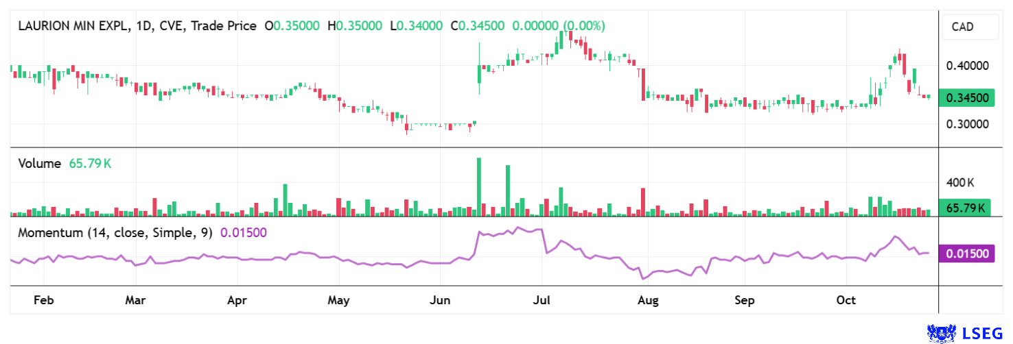 Das Unternehmen verfügt über etwa 7 Mio. CAD an Barmitteln, davon 1 Mio. CAD als Flow-Through-Mittel für Explorationen bis zum Jahresende. Über 73 % der ausstehenden Aktien befinden sich in Familien- und Insiderbesitz, ein starkes Zeichen der Gründer. Mit einer Marktkapitalisierung von nur knapp 93 Mio. CAD ist Laurion Minerals angesichts der aussichtsreichen Projekte viel zu günstig. In den letzten Jahren wurde zu wenig am Bekanntheitsgrad geändert, das könnte sich in den nächsten Monaten stark ändern. Wer jetzt investiert, agiert vor der Kurve. Einsammeln!