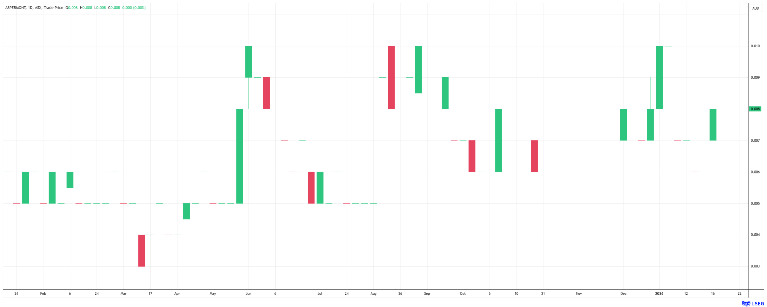 Die Aktie von Aspermont zog nach Verkündung der Zusammenarbeit mit Rio Tinto im Bereich KI im vergangenen August an und tendiert seitdem mit positiver Tendenz seitwärts. Der große Schub ist bislang ausgeblieben. Doch dürfte das auch daran liegen, dass Aspermont wie viele Titel aus Australien rein optisch ein Pennystock ist. Entscheidet sich das Unternehmen für eine Konsolidierung seiner Aktienanzahl, dürfte das dem Wert automatisch mehr Aufmerksamkeit bescheren. Operativ ist Aspermont längst auf einem guten Weg – nachdem man mit Rio Tino ein Dickschiff der Branche hat überzeugen können, erscheinen die verbliebenen operativen Risiken deutlich geringer. Die Aktie ist ein Geheimtipp.