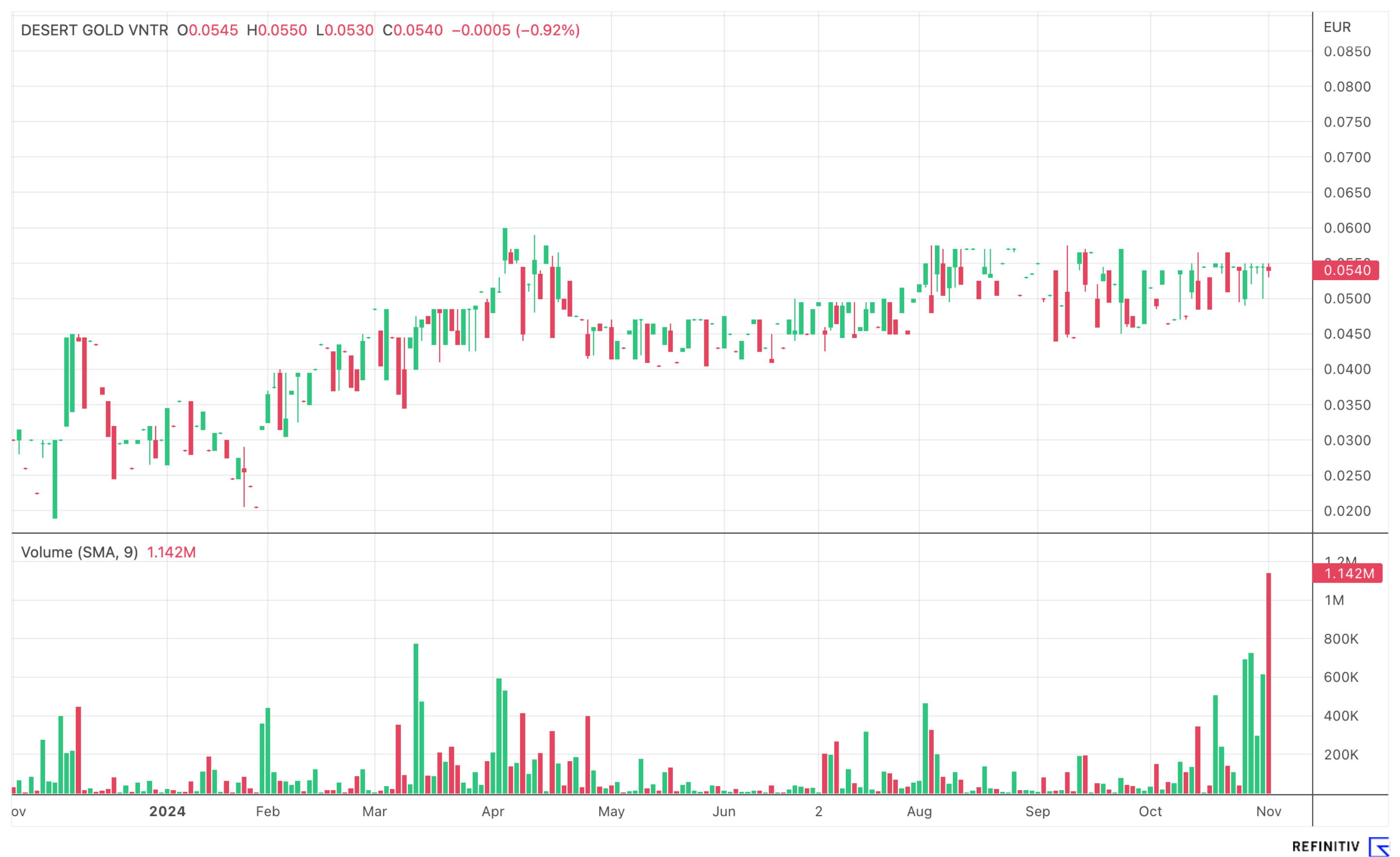 Aktuell befindet sich Desert Gold in der Phase der Vorbereitung einer Preliminary Economic Assessment (PEA), deren Ergebnisse von vielen als Katalysator für eine Neubewertung des Unternehmens angesehen werden. Derzeit wird jede Unze mit geringen 11,76 USD bei Desert Gold bewertet – hier besteht deutliches Nachholpotenzial. Das sehen auch die Analysten von GBC Investment Research so und prognostizieren einen Anstieg des Aktienkurses auf 0,425 CAD, was deutlich über dem aktuellen Kurs von 0,08 CAD liegt. Das geringe Marktkapital von rund 18 Mio. CAD bedeutet, dass selbst moderat positive Nachrichten einen substanziellen Einfluss auf den Aktienwert haben können.