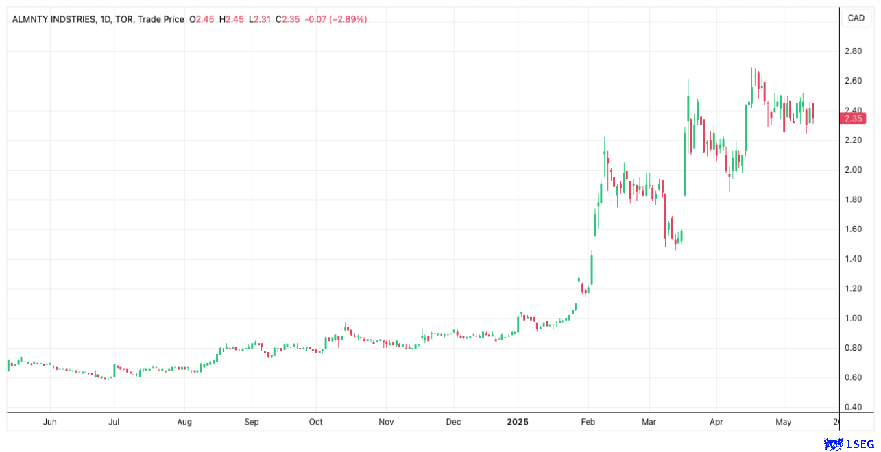 Damit wird Almonty Industries zum strategischen Rückgrat der westlichen Rüstungsindustrie. Kein Wunder also, dass das Unternehmen bereits seine Sitzverlegung in die USA vorbereitet und eine Notierung an der NASDAQ anstrebt – dem größten Kapitalmarkt der Welt. Analyst Peter Thilo Hasler von Sphene Capital hat das Potenzial erkannt und das Kursziel jüngst auf 5,40 CAD erhöht – Kaufempfehlung inklusive! (Quelle)