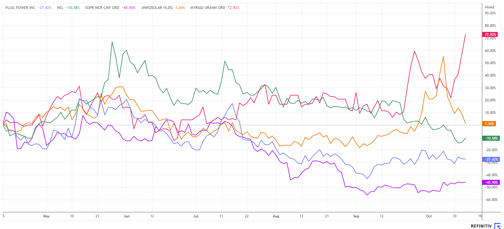 MYRIAD URANIUM CORP | CA62857Y1097 , PLUG POWER INC. DL-_01 | US72919P2020 , NEL ASA NK-_20 | NO0010081235 , JINKOSOLAR ADR/4 DL-00002 | US47759T1007 , SUPER MICRO COMPUT.DL-_01 | US86800U1043