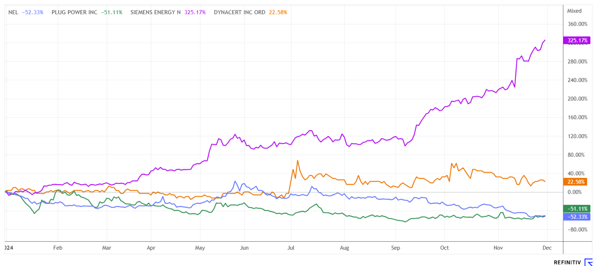 SIEMENS ENERGY AG NA O.N. | DE000ENER6Y0 , DYNACERT INC. | CA26780A1084 , NEL ASA NK-_20 | NO0010081235 , PLUG POWER INC. DL-_01 | US72919P2020
