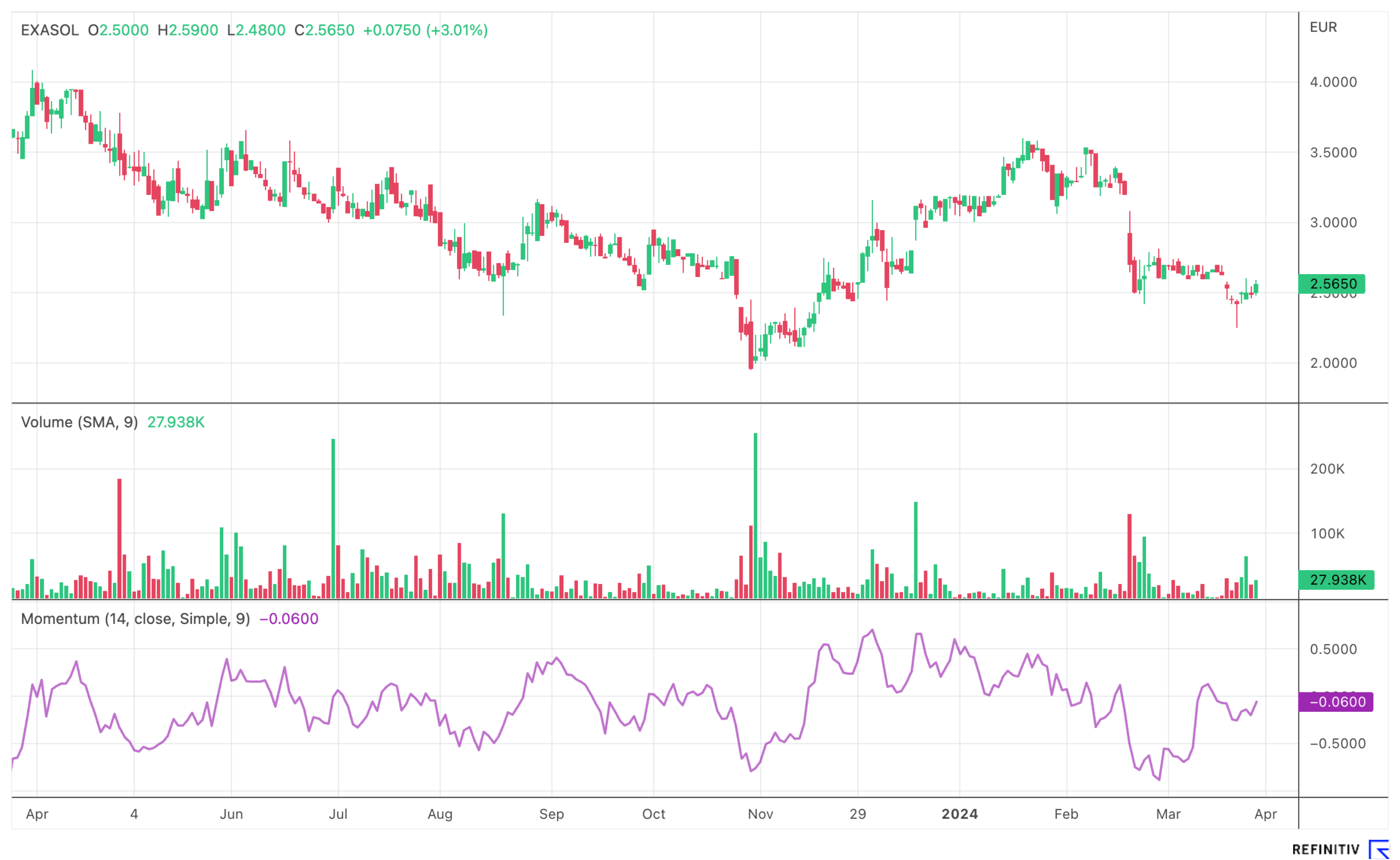 Bei der digitalen Transformation geht es nicht nur um Hardware, auch wenn NVIDIA und Super Micro Computer momentan vom Nachfrageboom profitieren, sondern auch um praxisorientierte Anwendungen. In diesem Zusammenhang arbeitet das Wachstumsunternehmen Exasol mit seinem Produktuniversum durch innovative Lösungen an der Unabkömmlichkeit beim Kunden. Sobald sich die Nutzer an eine erfolgreiche und komfortable Installation der Software gewöhnt haben, sind die langfristigen Lizenzeinnahmen gesichert. In der vergangenen Woche hat das Unternehmen z.B. die Ausweitung von bestehenden Verträgen und Neukunden aus dem Finanzsektor in Europa und den USA verkündet. Wer neu in diesen Markt eindringen möchte, muss sich strategische Fragen stellen und eine Akquisition wäre keine Seltenheit - was die Attraktivität von Exasol mit jedem Neukunden steigern lässt.