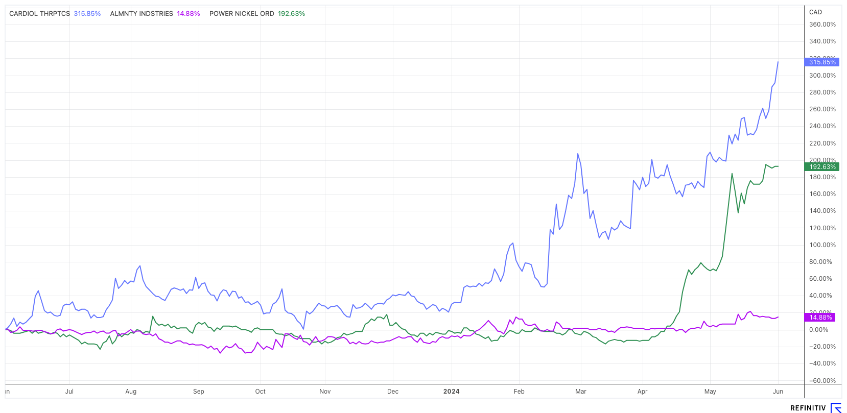 Für Anfang Juni werden Ergebnisse der Phase-II-Pilotstudie MAvERIC erwartet, die Patienten mit wiederkehrender Herzbeutelentzündung betrifft. Zudem war die Archer-Studie, eine weitere Phase-II-Studie zur Wirkung von CardiolRx™ bei akuter Myokarditis, Thema eines Vortrags auf dem World Congress on Acute Heart Failure 2024 in Lissabon. Das Analysehaus HC Wainwright setzt ein Kursziel von 9,00 USD für Cardiol Therapeutics, was ein weiteres Potenzial von über 200 % bedeuten würde.