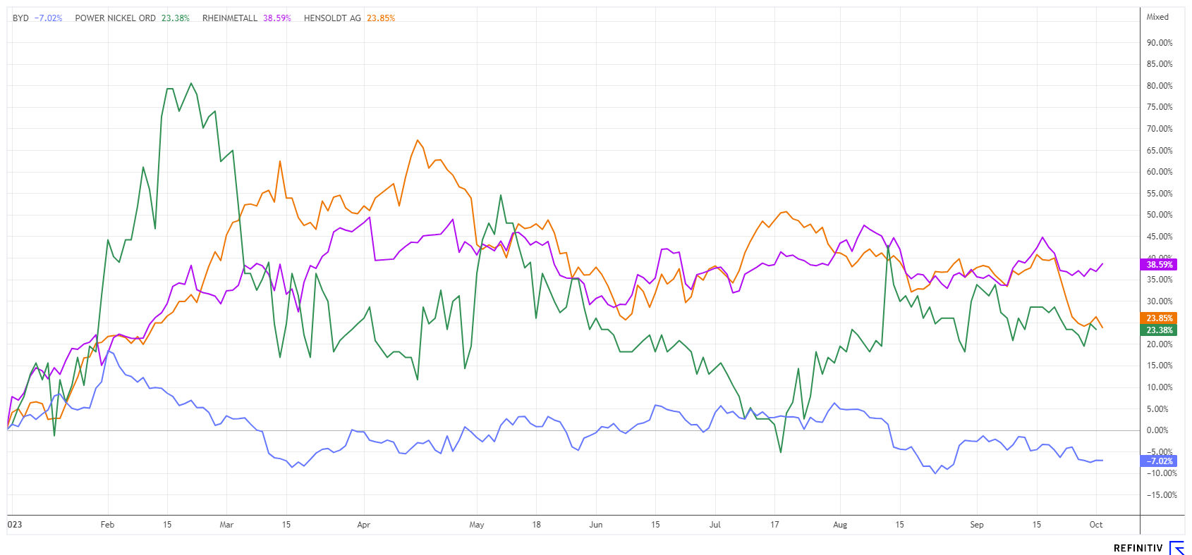 Derzeit lassen sich viele Gründe finden, die zur Zurückhaltung an der Börse animieren. Gleichzeitig gibt es ungeachtet großer Verwerfungen auch unaufhaltsame Dauertrends, die sich in jeglicher Umgebung weiter nach vorne entwickeln werden. BYD befindet sich in einer ausgedehnten Konsolidierung, Rheinmetall ist seit Tagen wieder in aller Munde und die kanadische Power Nickel liefert beständig. Ein bunter Mix aus brauchbaren Ideen.