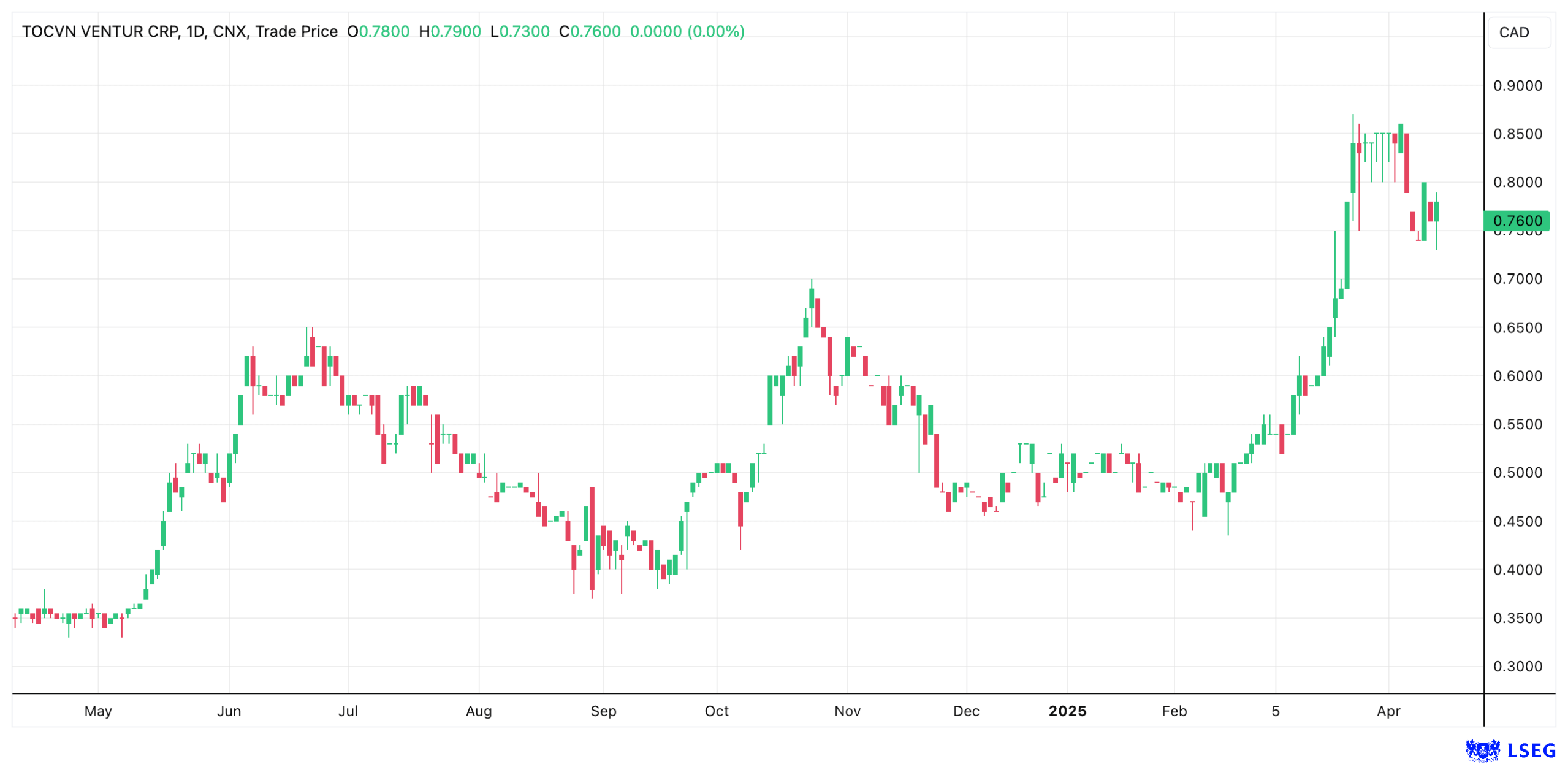 Mit einem geplanten Produktionsstart in 2025, einer bald erwarteten Ressourcenschätzung und dem Rückenwind eines weiterhin starken Goldpreises könnte Tocvan Ventures zu einem der spannendsten Junior-Explorer im Jahr 2025 avancieren.