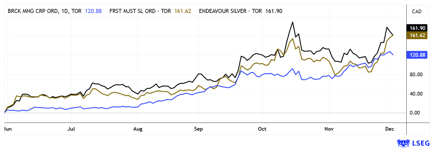 Branchenmitstreiter Endeavour Silver befindet sich in 2025 in einer Phase der strategischen Neuausrichtung, allerdings mit deutlich positiverem Momentum als noch 2024. Im dritten Quartal stiegen die Gesamtkosten (AISC) um 18 % auf 30,53 USD je Unze, doch die parallele Aufwertung des Silberpreises hielt die Profitabilität auf Kurs. Mit mehr Liquidität, zunehmender Cashflows und neue Projekte wie Terronera, das Mitte 2025 seine volle Kapazität erreichen soll, baut Endeavour seine Minenlandschaft systematisch aus. Zusammen mit Liegenschaften Guanaceví, Bolañitos und Kolpa entsteht eine diversifizierte Plattform, die bis 2027 Produktionsvolumina von bis zu 20 Mio. Unzen Silberäquivalent ermöglichen könnte. Analysten gehen daher von steigenden EBITDA-Margen, wachsendem Nettogewinn und langfristig stabiler Wertsteigerung aus. Damit zählt Endeavour zunehmend zu den wachstumsstärksten Akteuren im Silbersektor. Die Neubewertung sollte sich weiter fortsetzen. CIBC Capital votiert im Dezember erstmals mit „Outperform“ und setzt das 12-Monatskursziel auf 16 CAD fest. Der Schnitt auf der Plattform LSEG liegt bei 14,25 CAD. Da ist noch Luft!