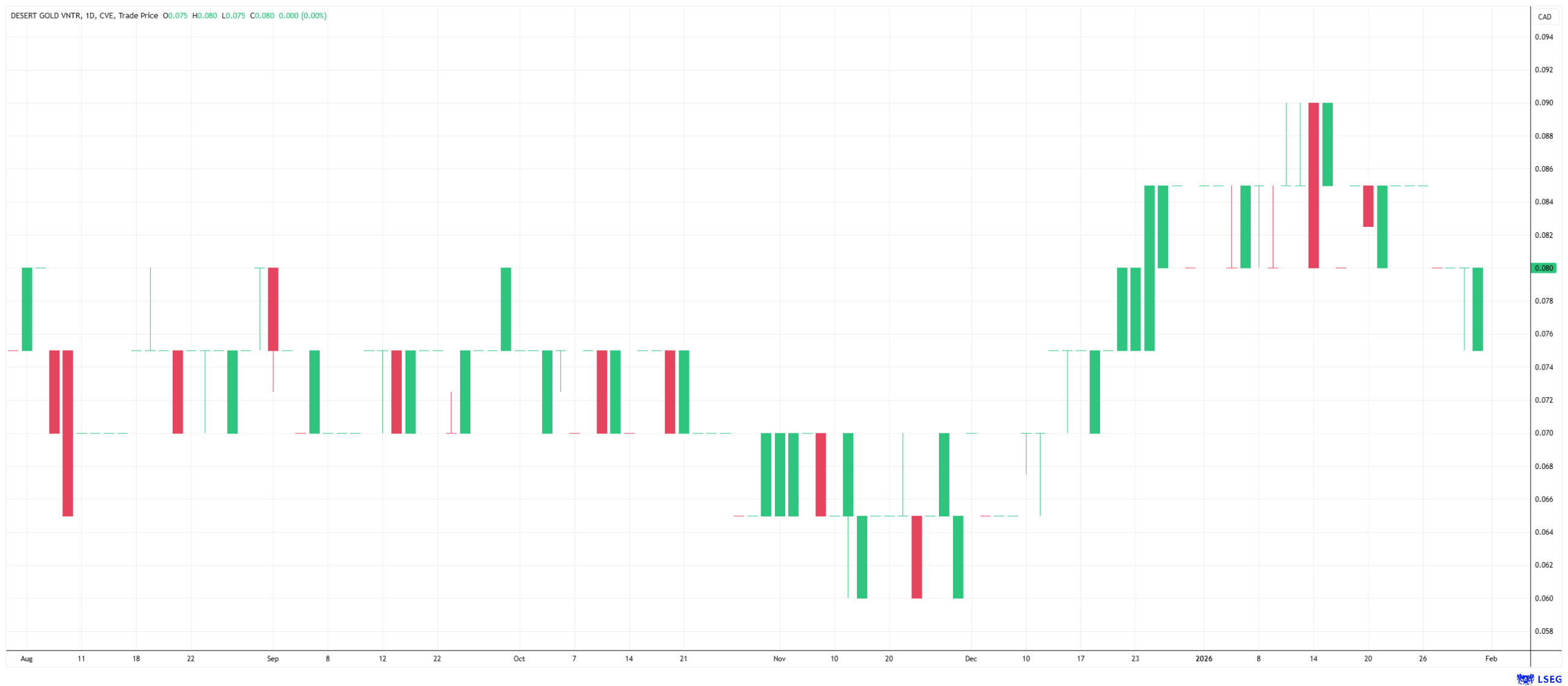 Zwar bleibt das geopolitische Risiko in Westafrika ein Faktor, doch produzieren Minen in dieser Gegend seit Jahrzehnten zuverlässig, unabhängig von der politischen Wetterlage, da sie für die Staatshaushalte essenziell sind. Für spekulativ denkende Investoren, die auf eine Übernahmewelle im Sektor setzen, ist Desert Gold der logische Kandidat. Entweder das Unternehmen wird zum Produzenten und generiert eigenen Cashflow oder es wird zur Beute eines der hungrigen Nachbarn. In beiden Szenarien dürfte der aktuelle Kurs viel Luft nach oben haben.