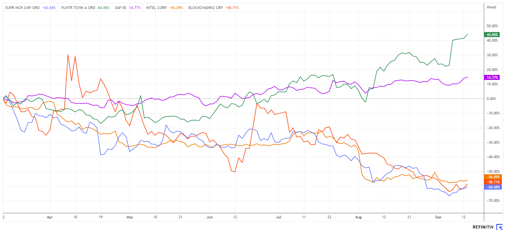INTEL CORP. DL-_001 | US4581401001 , BLOCKCHAINK2 CORP | CA09369M1077 , SAP SE O.N. | DE0007164600 , SUPER MICRO COMPUT.DL-_01 | US86800U1043 , PALANTIR TECHNOLOGIES INC | US69608A1088