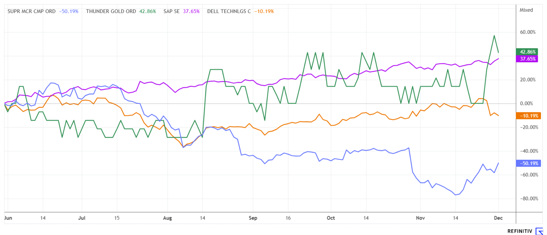 THUNDER GOLD CORP | CA88605F1009 , SUPER MICRO COMPUT.DL-_01 | US86800U1043 , DELL TECHS INC. C DL-_01 | US24703L2025 , SAP SE O.N. | DE0007164600