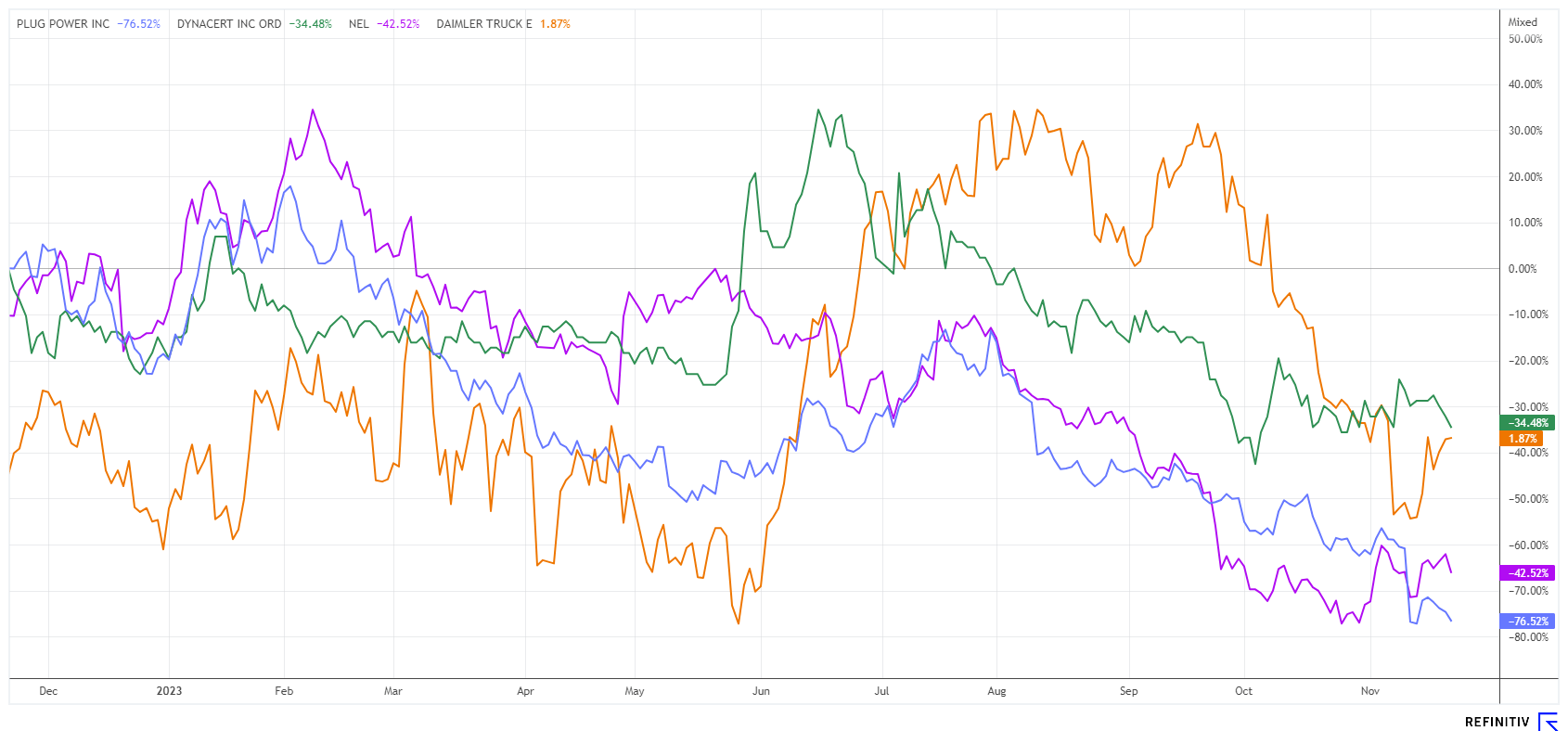 DYNACERT INC. | CA26780A1084 , PLUG POWER INC. DL-_01 | US72919P2020 , NEL ASA NK-_20 | NO0010081235 , Daimler Truck Holding AG | DE000DTR0013