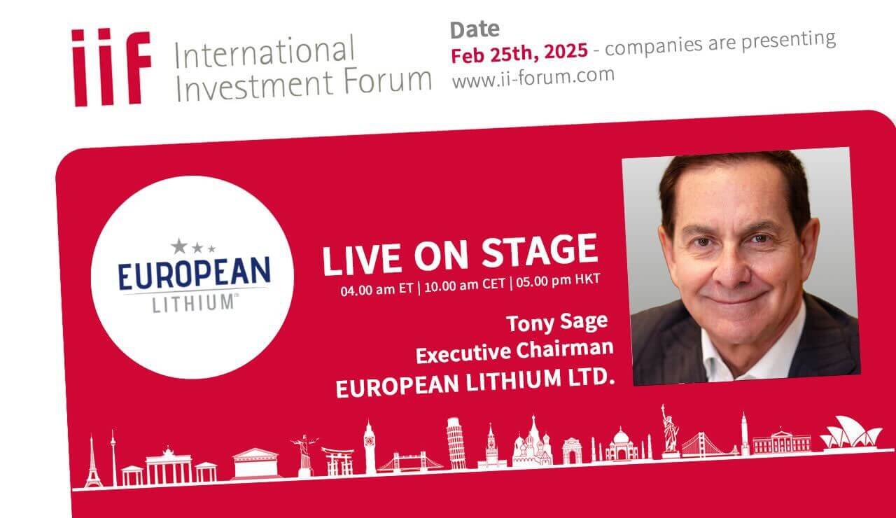 European Lithium wird am 25. Februar auf dem nächsten International Investment Forum von Executive Chairman Tony Sage vertreten. Die Story bietet viel Gesprächsstoff. Kostenfreie Anmeldung unter diesem Link.