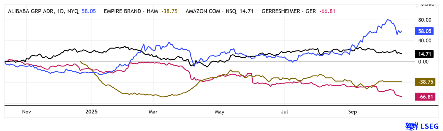 EMPIRE BRAND BUILDING AG | CH0597194171 , AMAZON.COM INC. DL-_01 | US0231351067 , ALIBABA GR.HLDG SP.ADR 8 | US01609W1027 , GERRESHEIMER AG | DE000A0LD6E6