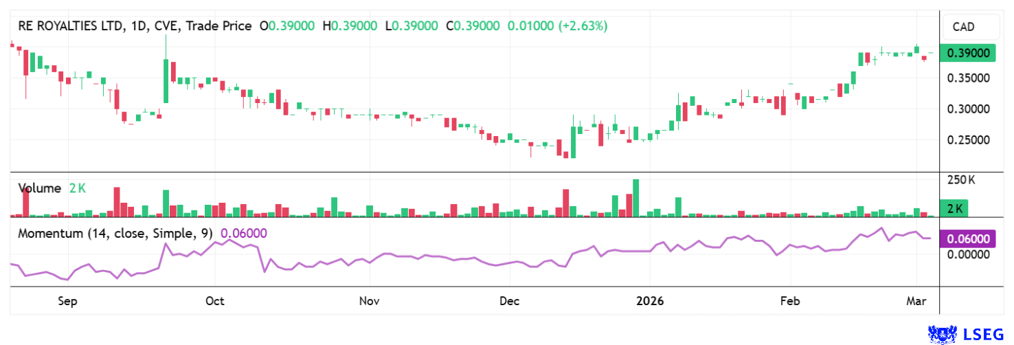 Im Zentrum der Expansion steht die Partnerschaft mit Solaris Energy. Nach einer ersten Finanzierungstranche wurde im Februar 2026 eine weitere Investition über 800.000 USD bekanntgegeben, womit sich das Engagement im ersten Portfolio auf insgesamt 4,8 Mio. USD beläuft. Dieses umfasst 15 dezentrale Solarprojekte in mehreren US-Bundesstaaten, darunter Kalifornien, Maine und Colorado, von denen sich ein Großteil bereits im Bau befindet oder kurz vor Inbetriebnahme steht. Ein zweites Portfolio befindet sich in der Due-Diligence-Phase; insgesamt soll das Investitionsvolumen auf 9 Mio. USD anwachsen. Die Royalty-Struktur ist auf eine Zielrendite über 25 Jahre ausgelegt, mit darüber hinausgehenden Zahlungsströmen über die restliche Projektlaufzeit. Strategisch adressiert RE Royalties damit gezielt den Markt für kommerzielle und industrielle Eigenstromlösungen, der vom steigenden Energiebedarf datenintensiver Anwendungen profitiert.