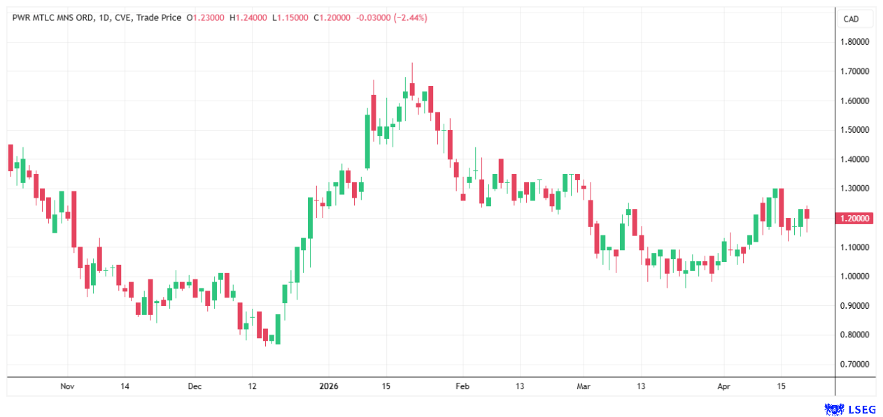 Für die Automobilindustrie ist das Nisk-Projekt aufgrund seines herausragenden ESG-Profils hochattraktiv. Power Metallic Mines strebt an, durch die natürliche Bindung von CO2 im ultramafischen Gestein die potenziell erste kohlenstoffneutrale Nickelmine der Welt zu entwickeln. Dieses Alleinstellungsmerkmal zieht das "Smart Money" der Branche an: Bergbaulegenden wie Robert Friedland, Rob McEwen sowie die australische Milliardärin Gina Rinehart gehören bereits zum illustren Aktionärskreis. Durch eine erfolgreiche Privatplatzierung im Volumen von umgerechnet rund 36 Mio. USD ist das Unternehmen für das laufende 100.000-Meter-Bohrprogramm vollständig finanziert. Da westliche Autobauer nach sauberen Rohstoffquellen für ihre Elektrofahrzeuge suchen, bietet Power Metallic Mines risikobewussten Investoren die spannende Chance, sich noch vor der für Herbst 2026 geplanten ersten wirtschaftlichen Bewertung des Nisk-Projekts an einer aufstrebenden Weltklasse-Lagerstätte zu beteiligen.