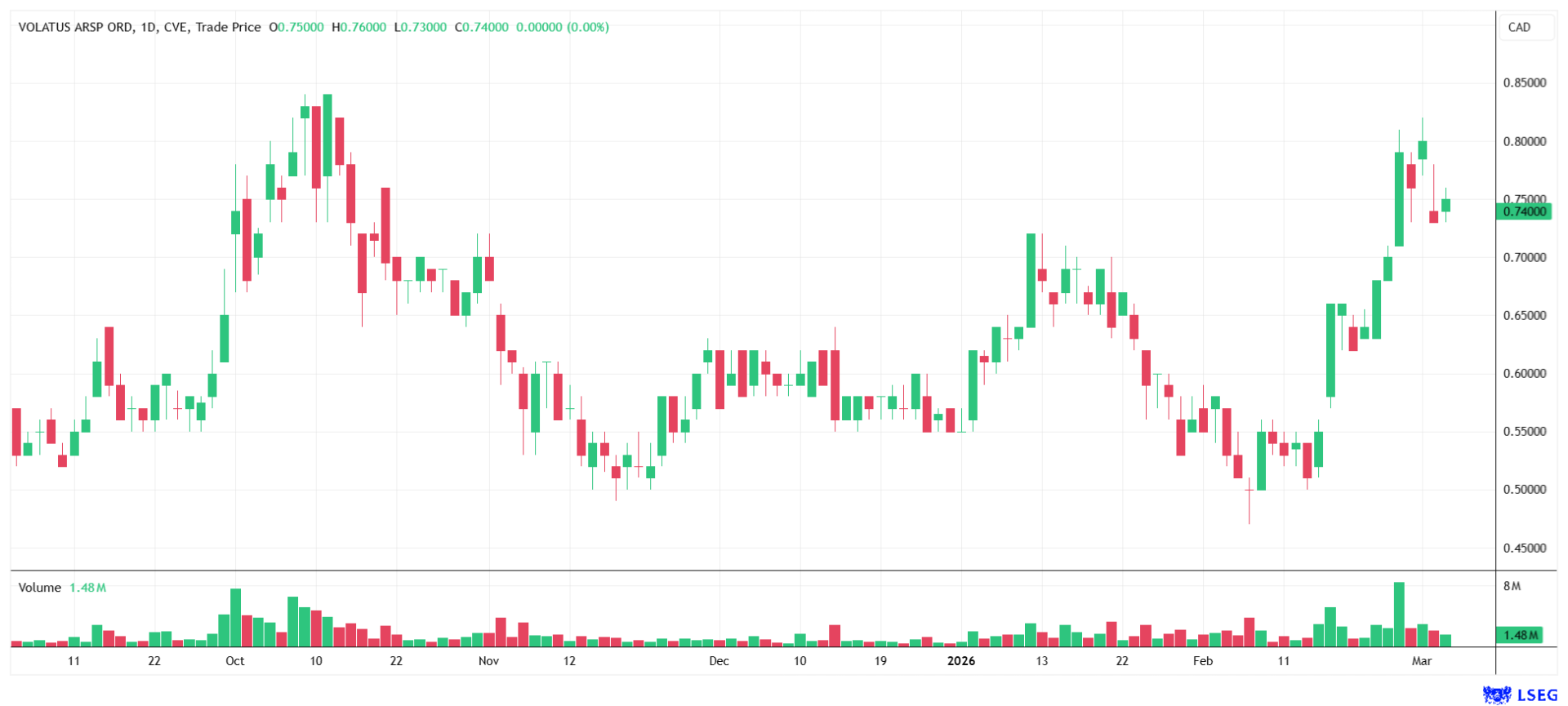 Die Aktie notiert aktuell bei 0,70 CAD und damit deutlich über dem Preis der letzten Privatplatzierung, die bei 0,60 CAD abgeschlossen wurde. Das ist als gutes Zeichen zu werten.