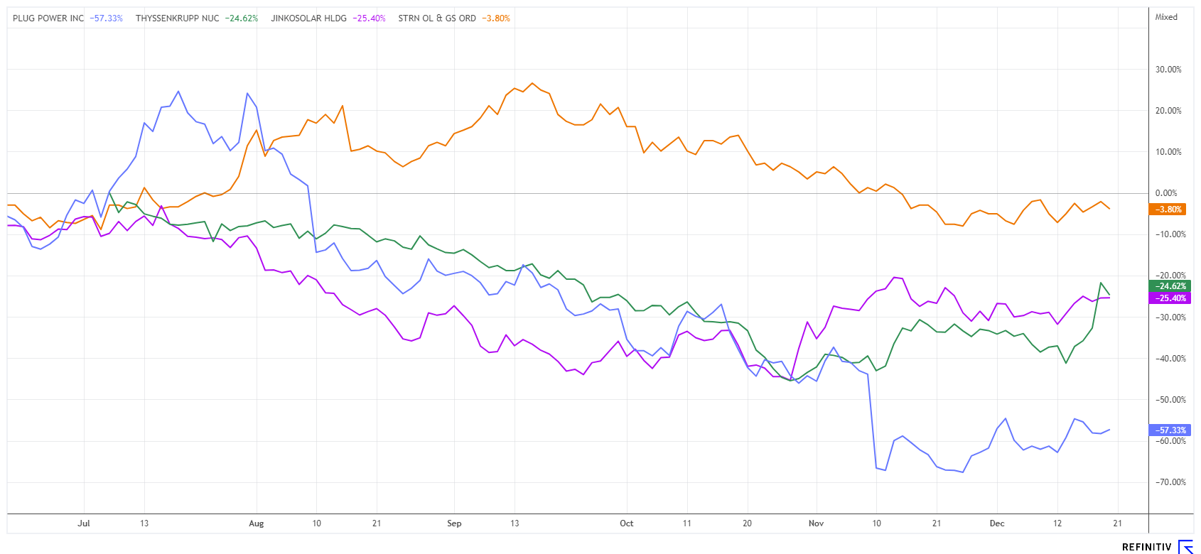 Saturn Oil + Gas Inc. | CA80412L8832 , PLUG POWER INC. DL-_01 | US72919P2020 , THYSSENKRUPP NUCERA AG & CO KGAA | DE000NCA0001 , JINKOSOLAR ADR/4 DL-00002 | US47759T1007