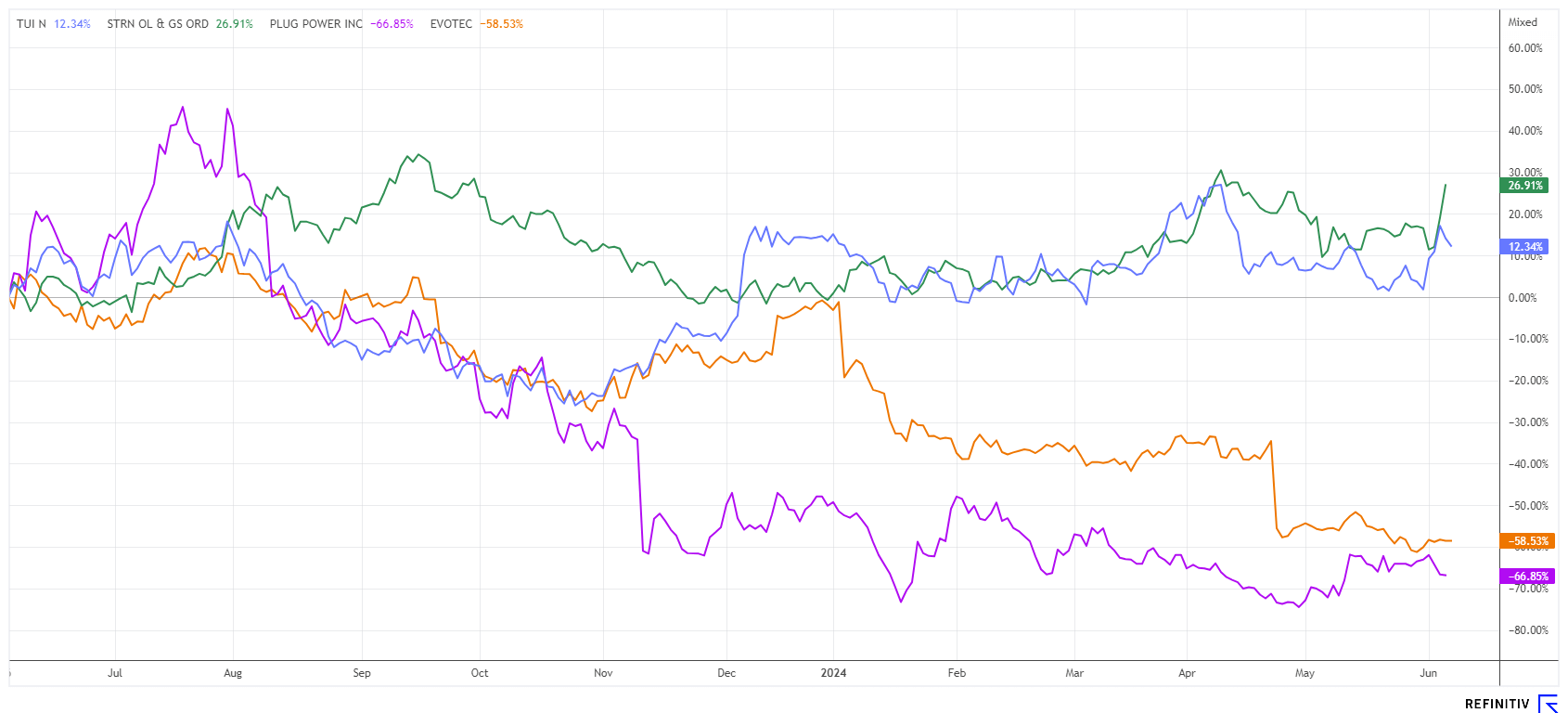 Saturn Oil + Gas Inc. | CA80412L8832 , TUI AG NA O.N. | DE000TUAG505 , PLUG POWER INC. DL-_01 | US72919P2020 , EVOTEC SE INH O.N. | DE0005664809