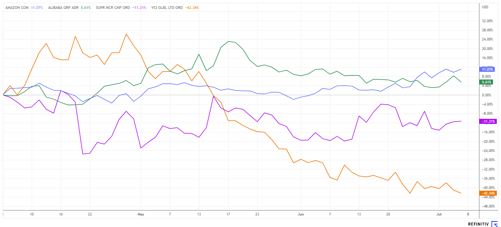 Hightech-Aktien wie Amazon und Super Micro Computer sind an der NASDAQ sehr gefragt. Rund um den Globus sieht die Situation allerdings etwas gedrückter aus. Alibaba aus China ist sehr günstig bewertet und wird regelrecht links liegen gelassen. Bei der Technologie-Holding VCI Global folgt ein Deal dem nächsten, der Kurs wird aber wohl künstlich gedrückt. Investoren sollten deshalb auf der Hut sein, denn schnell kann sich alles ins Verkehrte drehen.