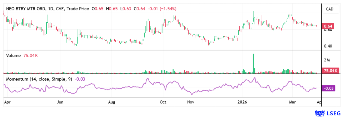 NEO BATTERY MATERIALS LTD | CA62908A1003 | TSXV: NBM , OTC: NBMFF