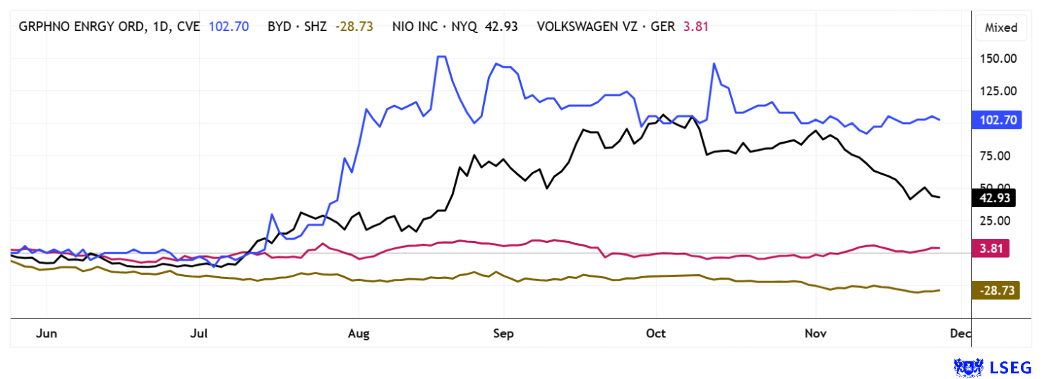 Graphano Energy Ltd. | CA38867G2053 , BYD CO. LTD H YC 1 | CNE100000296 , NIO INC.A S.ADR DL-_00025 | US62914V1061 , VOLKSWAGEN AG ST O.N. | DE0007664005 , VOLKSWAGEN AG VZO O.N. | DE0007664039
