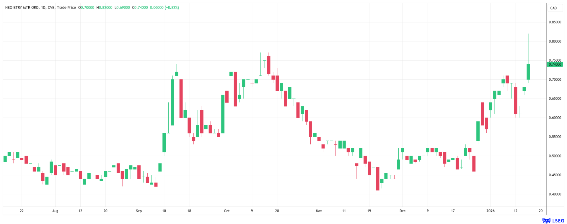 Die Aktie von NEO Battery Materials beginnt bereits, diese Neubewertung widerzuspiegeln. Während der breite Markt noch über Zinsen diskutiert, kauft das „Smart Money“ die Ausrüster der Zukunft. NEO ist dabei die Wette auf die Erkenntnis, dass der nächste Krieg nicht durch den stärksten Panzer, sondern durch die ausdauerndste Drohne entschieden wird. In einem Umfeld, in dem die NATO ihre Lieferketten von Grönland bis Südkorea neu ordnen muss, ist NEO Battery Materials einer der wenigen Player, der die technologische Antwort auf die chinesische Dominanz bereits marktreif in der Hand hält. Zuletzt feierte das Unternehmen Monat für Monat neue operative Erfolge und befindet sich in der Hochlauf-Phase. Das Timing könnte kaum besser sein: Auch die Aktie befindet sich auf dem Niveau der Mehr-Monats-Hochs und schickt sich an, in neue Bereiche vorzustoßen. Während Rheinmetall und Hensoldt an Kapazitätsgrenzen stoßen und sich erst langsam auf die neuen Kriege einstellen, trifft NEO Battery Materials exakt den Zeitgeist.