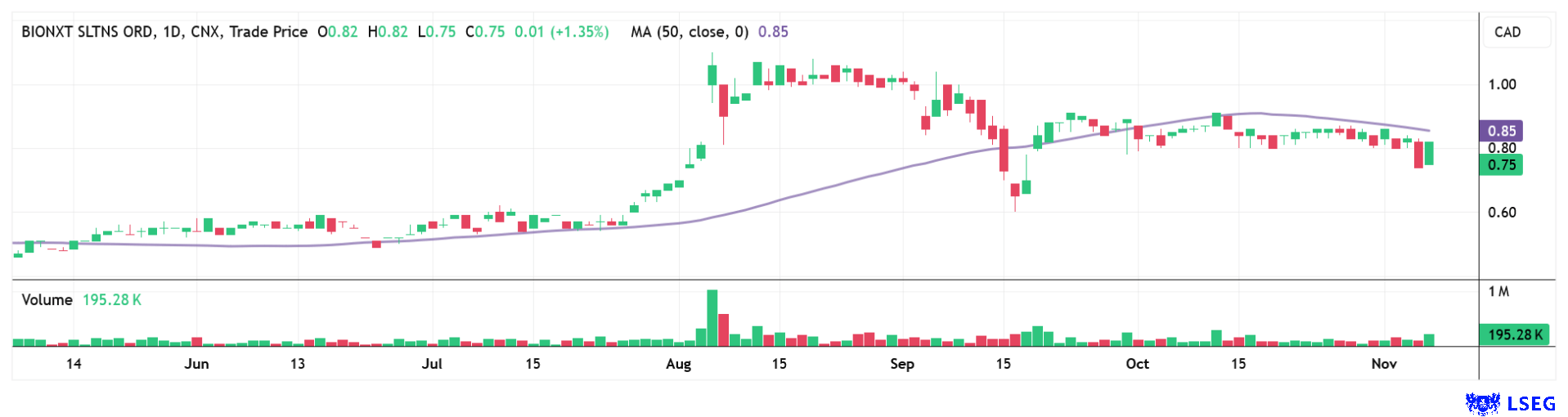 Zunächst liegt der Fokus aber auf der Formulierung mit dem MS-Medikament Cladribin. Hier soll spätestens 2026 eine Bioäquivalenzstudie am Menschen erfolgen. Da der Wirkstoff bereits zugelassen ist, gestaltet sich die Zulassung einer neuen Darreichungsform weniger komplex. Für Investoren kann das eine Chance sein. Die Aktie von BioNxt lief zuletzt seitwärts, ist angesichts der geringen Bewertung von nur rund 60 Mio. EUR allerdings bei jeder positiven Meldung auch für eine dynamische Aufwärtsbewegung gut. BioNxt besetzt mit seinen Darreichungsformen eine innovative Nische und ist selbst zu den ganz Großen der Branche anschlussfähig.