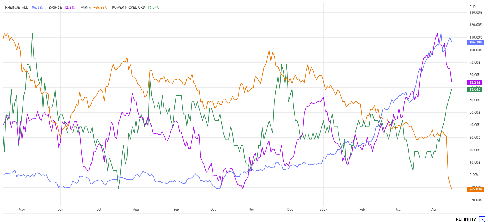 Power Nickel Inc. | CA7393011092 , BASF SE NA O.N. | DE000BASF111 , VARTA AG O.N. | DE000A0TGJ55 , RHEINMETALL AG | DE0007030009