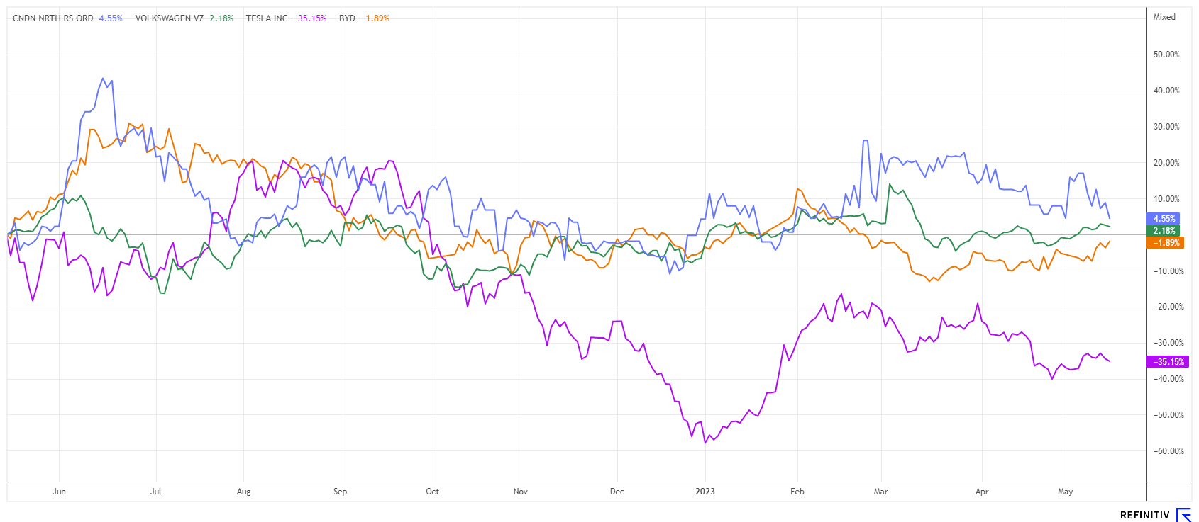 Der Kampf gegen die Klima-Erwärmung führt im Bereich der Mobilität zu völlig neuen Voraussetzungen. Deutschland war immer ein Garant für gute Motoren-Technologie. Dies scheint nun unwichtig geworden zu sein, denn der Siegeszug des E-Mobils hat bereits begonnen. Das verstärkt den Bedarf an kritischen Metallen. Canadian North Resources kann daher für spekulative Investoren eine gute Beimischung sein. VW und BYD sind international bekannte Standardwerte mit hoher Substanz.