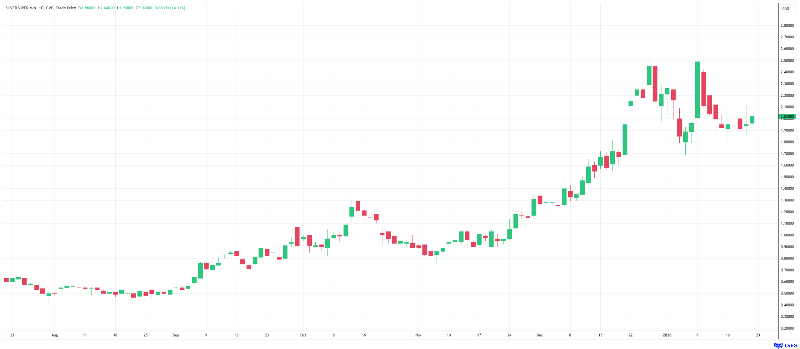 Während vergleichbare Unternehmen, die bereits ihren großen „Entdeckungs-Moment“ hatten, schon heute ambitioniert bewertet sind, handelt Silver Viper noch unter dem Radar. Die aktuelle Marktkapitalisierung spiegelt im Wesentlichen nur den Wert des Bodens wider, nicht aber das Potenzial einer neuen Entdeckung. Für risikobereite Anleger bietet die Aktie von Silver Viper eine klassische Asymmetrie: Das Risiko ist durch das erfahrene Management und die bekannten Vorkommen begrenzt, während die Chance auf eine Neubewertung bei erfolgreichen Bohrergebnissen enorm ist. Obwohl die Aktie aufgrund des frühen Stadiums des Unternehmens nichts für Anfänger ist, ist Silver Viper Minerals der logische Kandidat für spekulativ denkende Investoren.