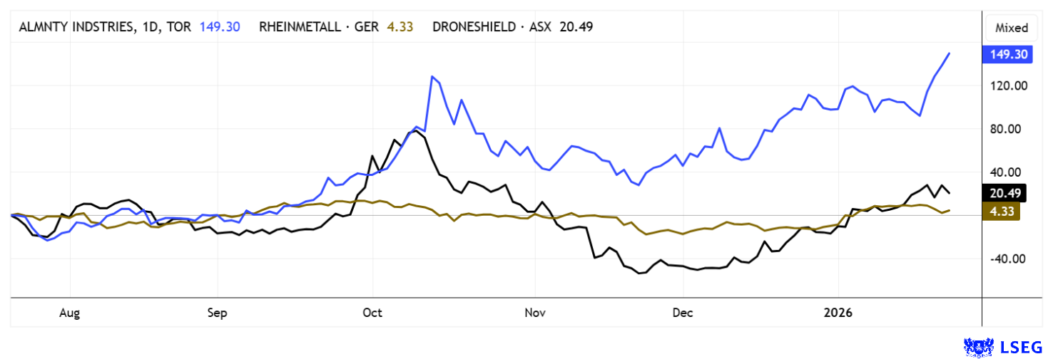ALMONTY INDUSTRIES INC. | CA0203987072 , RHEINMETALL AG | DE0007030009 , DRONESHIELD LTD | AU000000DRO2 , CSG NV | NL0015073TS8