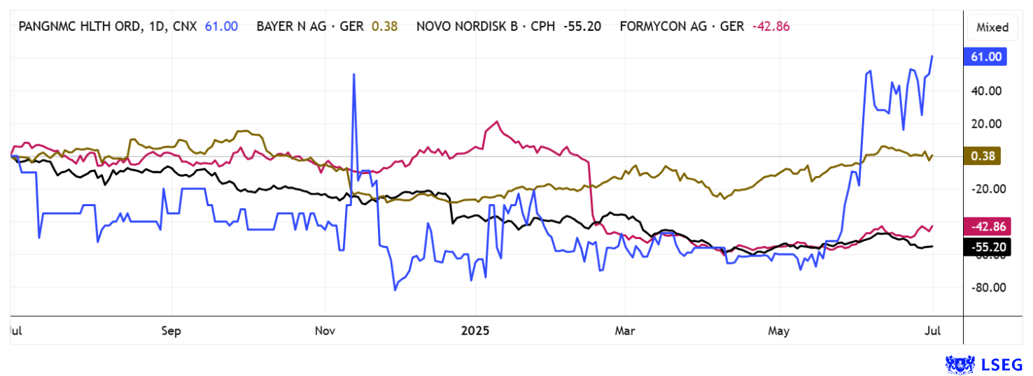 BAYER AG NA O.N. | DE000BAY0017 , PANGENOMIC HEALTH INC | CA69842E4031 , NOVO NORDISK A/S | DK0062498333 , FORMYCON AG | DE000A1EWVY8